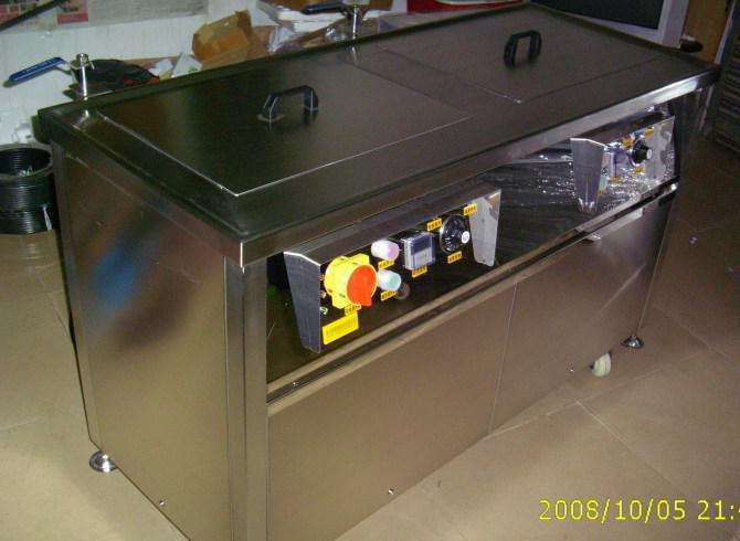 整机结构:整体框架为不锈钢型材焊接而成、清洗槽体为SUS304 2mm厚板材激光切割、折弯而成、可拆卸不锈钢封板、设备为一体结构组成、控制简单易操作、维修方便。